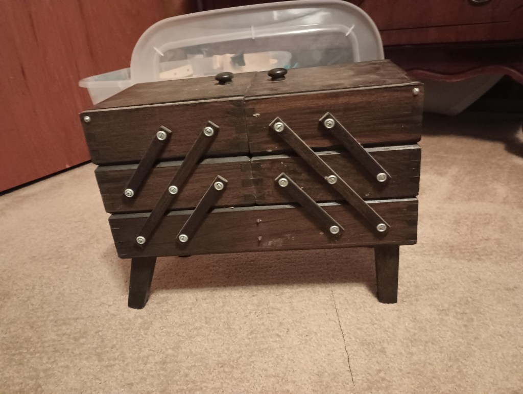 the following DMC colors: 822, 934, 3830, 520, 161.